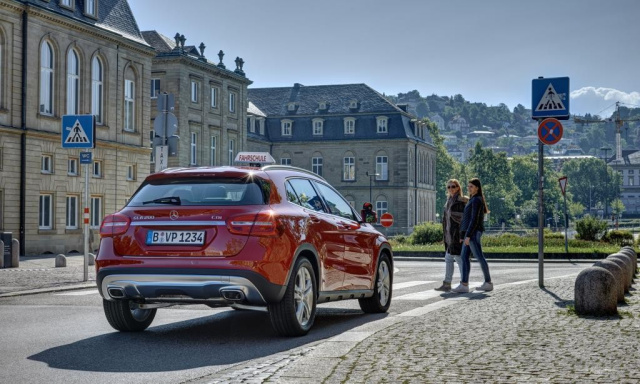 Die Fahrschulausstattung ab Werk für den Mercedes GLA umfasst eine Doppelpedalanlage und einen zweiten Innenspiegel und kostet 1.150 Euro (zzgl. Mehrwertsteuer). Auf Wunsch sind zwei Zusatzaußenspiegel bestellbar. Der neue GLA ist ab sofort als Fahrschulmodell erhältlich.