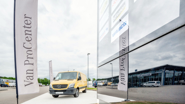 Van ProCenter zeichnen sich zudem durch eine hohe Verfügbarkeit an Fahrzeugen aus. Probefahrten mit allen Mercedes-Benz Transportermodellen sind damit auch kurzfristig gewährleistet. Eine gezielte und noch bedarfsgerechtere Kundenbetreuung wird durch die Integration der Fahrzeuge in den Showroom des Autohauses ermöglicht, wo bestens geschulte Mitarbeiter zu allen Fragen rund um Produkt, Kauf, Service, Finanzierung oder Aufbau beratend zur Seite stehen. Spezielle Dienstleistungen wie Hol- und Bring-Service bei Wartung oder Reparatur sowie verlängerten Öffnungszeiten, welche den Zeit- und Organisationsaufwand für den Kunden minimiert, ergänzen das Angebot.