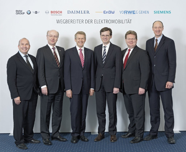 Deutschland ist auf dem Weg in eine emissionsfreie Zukunft. Die Bundesregierung fordert in ihrem Nationalen Entwicklungsplan Elektromobilität die Verknüpfung von Klimaschutz und Industriepolitik und möchte so Deutschland zum Leitmarkt für Elektromobilität machen. Bis 2020 sollen dabei eine Million Elektrofahrzeuge auf die Straßen gebracht werden. Um dieses Ziel in greifbare Nähe rücken zu lassen, ist die Steigerung der Akzeptanz beim Kunden durch erhöhte Nutzerfreundlichkeit Grundvoraussetzung. Hier setzen nun sechs deutsche Unternehmen mit der Unterzeichnung einer Absichtserklärung einen Meilenstein. Auf Basis einer industrieübergreifenden, offenen Datenplattform für die Vernetzung von Mobilitäts- und Fahrzeuganbietern im Bereich der Ladeinfrastruktur soll zukünftig deutschlandweit der Komfort bei der Nutzung von Elektrofahrzeugen deutlich erhöht werden. Mit diesem Ziel haben die BMW Group, Bosch und Daimler sowie EnBW, RWE und Siemens die Gründung eines Gemeinschaftsunternehmens im ersten Halbjahr 2012 vereinbart. Die sechs Partner unterzeichneten dazu eine Absichtserklärung in Stuttgart.