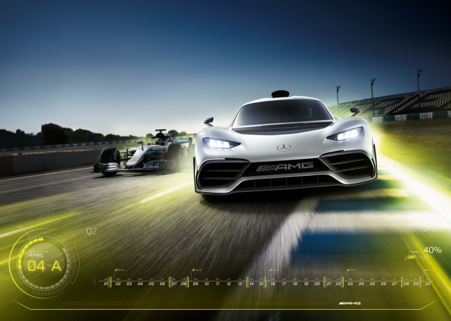 Der Kalender 2018 ist wie gemacht für performancebegeisterte Menschen. Im Mittelpunkt steht das Mercedes-AMG Hypercar, das Formel-1-Technologie streetlegal auf die Straße bringt. (Abmessungen: 69 x 49 cm; 36,90 Euro)