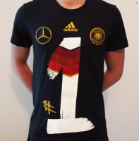 2014 - Es ist geschafft! Nach 1954, 1974, 1990 ist Deutschland endlich wieder Weltmeister. Verdientermaßen kam das DFB-Team, um Jogi Löw, Phillip Lahm, Mats Hummels und Lukas Podolski mit dem goldenen Pokal und in schicken #1 Siegershirts gekleidet auf die Fanmeile in Berlin und feierte dort mit Hunderttausenden von Fans ein unvergessliches Fest.