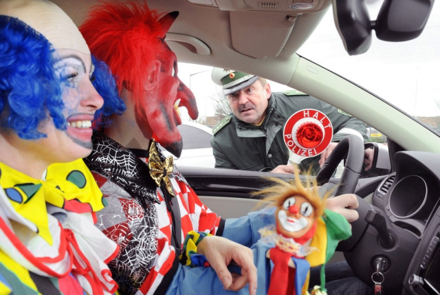 Besonders an den Tagen von Weiberfastnacht bis Aschermittwoch herrscht an Fasching, Fastnacht, Karneval vielerorts Ausnahmezustand. Wer zur Party mit dem Auto anreist, sollte dennoch beachten, dass nicht jede Kostümierung hinterm Steuer gestattet ist. Wenn ein Kostüm einen Fahrer bei wichtigen Fahraufgaben behindert, weil er z. B. riesige Clownsschuhe anhat, droht ein Bußgeld. Ferner gilt auch an den tollen Tagen das Vermummungsverbot. Seit einer Novelle der Straßenverkehrsordnung im Oktober 2017 ist amtlich nach Paragraf 23 folgendes vorgeschrieben. "Wer ein Kraftfahrzeug führt, darf sein Gesicht nicht so verhüllen oder verdecken, dass er nicht mehr erkennbar ist." Wird der Verstoß von der Polizei geahndet, droht ein Bußgeld von 60 Euro.