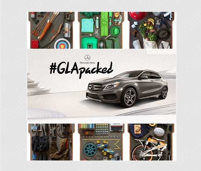 Der neue Mercedes-Benz GLA ist das Multitalent im kompakten SUV-Segment - und alles, außer langweilig. Neben progressivem Design und komfortabler Ausstattung hat der GLA ganz viel Alltagsnutzen zu bieten. Was immer sein Fahrer mit ihm vorhat, der Mercedes GLA packt das. Diese Botschaft soll auch ein charmantes Gewinnspiel von Mercedes USA transportieren. #GLApacked heißt die Aktion, bei der man aufgefordert ist, auf einer vorgegeben Fläche seine für-was-man-die-auch-immer benötigt-Gepäckstücke kreativ zu arrangieren, per Smartphone zu fotografieren und auf Twitter oder Instagramm mit den Hashtags #GLApacked and #Contest hochzuladen. Als Gewinn winkt eine dreitägie Sause mit dem Mercedes GLA plus Taschengeld, Reise- und Übernachtungskosten. Aber wie gesagt: Das Ganze ist eine Aktion von Mercedes-Benz USA. Gute Idee. Und irgendwie zur Nachahmung in Europa empfohlen, oder? BITTE HIER KLICKEN, wenn Sie sich das Gewinnspiel #GLApacked von Mercedes-Benz USA ansehen wollen. (Bilder. Mercedes-Benz USA)
