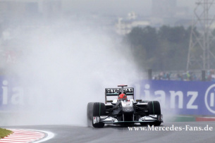 Es stimmt also doch: unter Druck kommen oft die besten Ergebnisse zustande. Michael Schumacher beendet den 16. Lauf zur Formel 1 Weltmeisterschaft als Sechster, während sein Team-Kollege Nico Rosberg durch einen Defekt sechs Runden vor Schluss ausfiel. Sebastian Vettel hält durch seinen Sieg Anschluss an seinen Red-Bull-Mannschaftskameraden Mark Webber (220 Punkte) und den punktgleichen Fernando Alonso (206).
