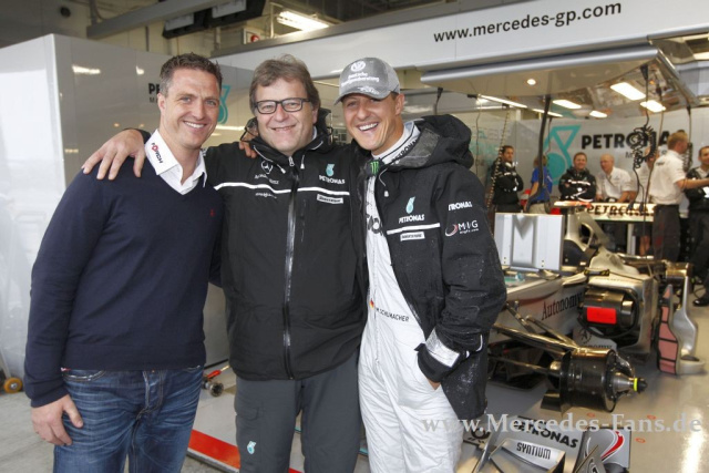 War das Tam-Tam um Michael Schumacher also nur reine Taktik? Im Team jedenfalls gab es keine äußerlichen Anzeichen einer Mißstimmung, ganz im Gegenteil es wurde die familiäre Atmophäre in den Vordergrund gerückt. Und Mercedes-Motorsport-Chef Norbert Haug ließ sich demonstrativ mit den beiden Schumacher-Brüdern, Ralf und Michael, ablichten.
