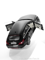 Zwei Maßstäbe stehen zur Wahl: Aus über 115 Einzelteilen montiert Norev den CLS Shooting Brake im Maßstab 1:18. Das 25,5 Zentimeter lange Modell besteht aus Zinkdruckguss. Türen, Motorhaube und Heckklappe lassen sich öffnen. Innenraum und Kofferraumboden sind beflockt, alle Interieurdetails originalgetreu dargestellt. Die Ausstattung umfasst Voll-LED-Scheinwerfer mit Intelligent Light System (ILS) sowie Leichtmetallräder im Vielspeichen-Design. Erhältlich ist das Modellauto ab Ende Oktober in Obsidianschwarz, Thulitrot sowie designo magno alanitgrau für 69,90 Euro[1]. Ein Handschuh sowie ein Schraubendreher, mit dem das Modell aus der Verpackung entfernt werden kann, liegen bei.