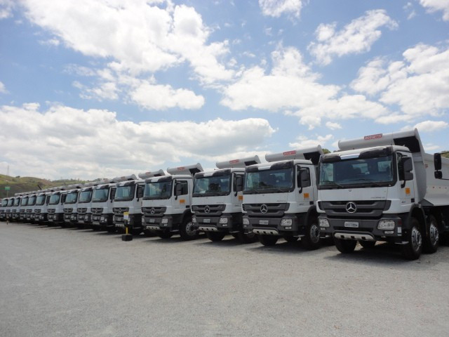 Mercedes-Benz und erwirbt 60 schwere Actros 4844 8x4 und 9 schwere Axor 3344 6x4 beide Modelle in der Kipperausführung für den Transport von Steinen und Erdreich, sowie 10 mittelschwere Atego 1725 4x4 und weitere 36 mittel-schwere Frontlenker FPN-Modelle für den lateinamerikanischen Markt. Diese dienen als Baustellenfahrzeuge z.B. für Material-transport und Instandsetzungsarbeiten. Die erworbenen Mercedes-Benz Actros verfügen über Fleetboard, das innovative Flottenmanagementsystem von Mercedes-Benz. Mit Fleetboard können bis zu 10 Prozent Kraftstoff gesenkt werden. Das System analysiert das Fahrverhalten und empfiehlt Leistungs-verbesserungen durch sparsames und vorausschauendes Fahren.