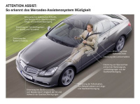 Als Beispiel nannte Breuer eine Warneinrichtung gegen Müdigkeit am Steuer, die Mercedes-Benz unter dem Namen ATTENTION ASSIST serienmäßig bei allen Fahrzeugen der E- und S-Klasse liefere (Ausnahme: S 400 HYBRID). "Schon in naher Zukunft werden wir weitere Modellreihen damit ausrüsten", kündigte Breuer an. Das System erkenne an 70 Parametern, etwa ungewöhnlichen Lenkbewegungen, wenn Fahrer vom gefährlichen Sekundenschlaf bedroht seien. Das System warnt dann durch optische und akustische Signale und fordert zu einer Pause auf.