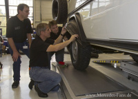 Mitarbeiterinnen und Mitarbeiter, darunter gewerblich-technische Auszubildende aus verschiedenen Werksstandorten der Daimler AG, übergeben heute der Caritas international ein Fahrzeug der geländegängigen G-Klasse, das sie speziell für den Forschungseinsatz in Bolivien ausgerüstet haben. Das Hilfswerk der deutschen Caritas führt dort in Kooperation mit der bolivianischen Caritas und anderen lokalen Organisationen Projekte zur Katastrophenprävention in besonders vom Klimawandel betroffenen Regionen durch.