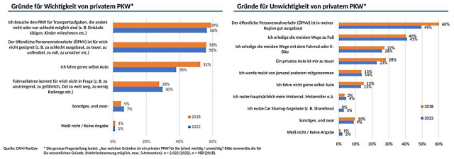 Dass Autofahrer im ländlichen Raum nach wie vor stark auf ihr Auto angewiesen sind, hat sich nicht geändert und wirft nach wie vor kein gutes Bild auf den Zustand der öffentlichen Verkehrsmittel in diesen Regionen. Dieser Eindruck verfestigt sich, wenn man genauer nachfragt. Waren vor vier Jahren noch 60 Prozent mit dem ÖPNV so zufrieden, dass sie die Autoschlüssel aus der Hand geben, sind es 2022 nur noch 49 Prozent. Wie sehr das eigene Fahrzeug in den Fokus rückt, zeigt, dass 30 Prozent der jüngeren (18 bis 34 Jahre alt) Menschen im urbanen Umfeld und 38 Prozent der gleichaltrigen Landbewohner auf Extras wie eine Urlaubsreise verzichten (2018: 25 und 30 Prozent) würden. Dass aktuell 14 Prozent der jüngeren Stadtbewohner für einen eigenen Pkw sogar in Betracht zögen, die Altersvorsorge aufzulösen, verwundert schon ziemlich. Übrigens im Vergleich zu 2018 eine Steigerung um sage und schreibe elf Prozent!