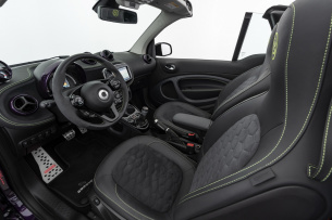 Mit seinem auf 68 kW / 92 PS leistungsgesteigerten Elektromotor mit vier verschiedenen Fahrmodi beschleunigt der exklusive Zweisitzer in nur 10,9 Sekunden von 0 – 100 km/h. Die Höchstgeschwindigkeit liegt bei 130 km/h. Je nach Fahrweise erreicht der BRABUS Ultimate E mit einer Batterieladung eine Reichweite von bis zu 125 Kilometern. Die „Pocket Rocket“ von BRABUS besticht aber nicht nur durch ihren leistungsstarken alternativen Antrieb: Eine extravagante Optik dank aufregend gestylter Breitversion, Sonderlackierung und 18 Zoll großen Schmiederädern ist ebenso charakteristisch für dieses Sondermodell wie ein luxuriöses BRABUS fine leather Interieur.