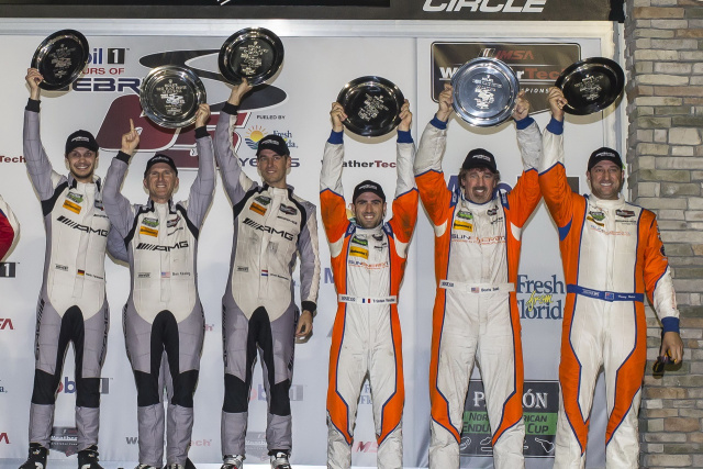 Wie gut der Mercedes-AMG GT3 auf dem 6,019 Kilometer langem Kurs in Florida zurechtkam, stellte das Kundenteam SunEnergy1 Racing mit Startnummer 75 bereits beim Qualifying eindrucksvoll unter Beweis. Tristan Vautier (FRA) markierte einen neuen Qualifying-Rekord und blieb mit einer Bestzeit von 1:59.738 Minuten als einziger Pilot der GTD-Klasse unter der Zwei-Minuten-Marke. Die Pole-Position ging jedoch durch eine unplanmäßige Reparatur beim Warm-Up vor dem Rennen verloren, so dass das Fahrzeug hinter dem Feld starten mussten. Im Rennen büßten Tristan Vautier, Boris Said und Kenny Habul (beide USA) durch Berührungen mit Konkurrenten weiter Zeit ein. Dennoch kämpften sich die drei immer wieder unbeeindruckt nach vorne. Eine Stunde vor Ende tauchte das Trio erstmals in den Top-3 auf. Die Podiumsentscheidung fiel in der packenden letzten Runde: Schlussfahrer Tristan Vautier zog an dem vor ihm liegenden Konkurrenten vorbei und steuerte den Mercedes-AMG GT3 #75 auf dem dritten Klassenrang ins Ziel.
