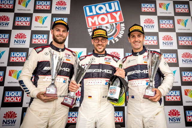 Zweiter wurde der McLaren mit der Nummer 60 von Alvaro Parente, Ben Barnicoat und Tom Blomqvist. Das Mercedes-AMG Team Triple Eight Race Engineering - eine Aussie-Version der MANN-FILTER Mamba - mit Shane van Gisbergen (NZL), Maximilian Götz (GER) und Jamie Whincup (AUS) sprang dann als Gesamtdritter auf das Podium. Aber das war es aus Mercedes-AMG Sicht noch lange nicht.
