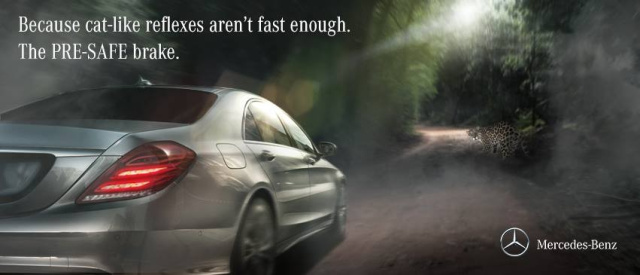 Das Rupfen seiner Disco-Hühner, noch dazu bei einem deutlich mieserem Sound, wollte Mercedes-Benz wiederum nicht auf sich sitzen lassen und schickte Jaguar gleich einen lieben Gruß über den Teich: "Dank Pre-Safe zieht ein Mercedes-Benz dem Jaguar das Fell nicht über die Ohren!"