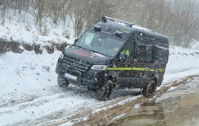 Mit dem Sprinter 4x4 den Horizont erweitern: lernen Sie den sicheren Umgang mit Ihrem Sprinter oder ganz individuellen allradtauglichem Reisemobil auf Sprinterbasis. Wer mit seinem Sprinter 4x4 die Welt erkunden, oder einfach nur sein Fahrzeug beherrschen möchte, sollte ein Gefühl für die Fahrzeugdimension entwickeln und verschiedene Untergründe und Situationen richtig einschätzen lernen.