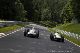 Am Donnerstag, 04. Juli fuhren Nico und Lewis zur Einstimmung auf das deutsche Heimrennen des Teams in einem historischen Silberpfeil vom Typ W 196 respektive W 154 eine Runde auf der Nürburgring Nordschleife. Auf Rennwagen dieser beiden Modelle konnten Juan Manuel Fangio (1954) beziehungsweise Richard Seaman (1938) am Nürburgring gewinnen.
