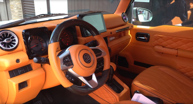 Für den Suzuki Jimny gibt es von diversen Herstellern Karosserie-Kits, die ihn auf G-Klasse-Optik trimmen und ihn sogar als AMG G63-Looker daherkommen lassen. Auch als BRABUS-Fake wurde der Jimny bereits gesichtet - aber in dem vorliegenden Fall war das Klonen eines BRABUS 800 G63 auf Basis eines Suzuki Jimny nicht nur auf die Äußerlichkeiten beschränkte. Der jetzt in London aufgetauchte und von Youtuber TheTFJJ außen rundherum und innen ebenfalls sehr detailreich abgefilmte Suzuki Jimny hat auch eine Innenraum-Modifikation in Stil und Optik eines BRABUS-Fine-Leather-Interieurs zu bieten. Alles in allem wirkt der Suzuki Jimny so täuschend echt wie die kleine Ausgabe eines BRABUS 800 /Mercedes AMG G63, dass seine Existenz eigentlich einen Verstoß gegen das Heimtückegesetz darstellen müsste. Auf seine Art eindrucksvoll gemacht, ist der Fake dennoch.