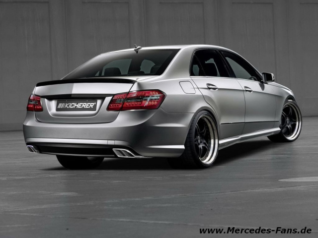 Die neue E-Klasse kommt offiziell erst am kommenden Samstag zu den Händlern, das hat die Firma Kicherer schon Hand angelegt. Die Tuner verpassten der Limousine ein neues Performance Paket, das ein Body Kit mit Front- und Heckspoiler aus GFK, Spiegelabdeckungen und Seitenschweller beinhaltet.