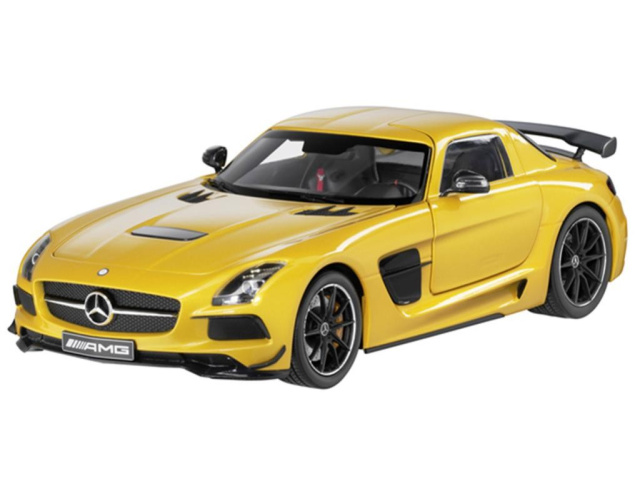 Das Miniaturmodell in Zinkdruckguss mit Kunststoffteilen wurde in Zusammenarbeit mit den Spezialisten von Minichamps auf Basis der Original-CAD-Daten umgesetzt. Es besteht aus über 120 Einzelteilen und ist in der exklusiven Originalfarbe AMG Solarbeam lackiert.