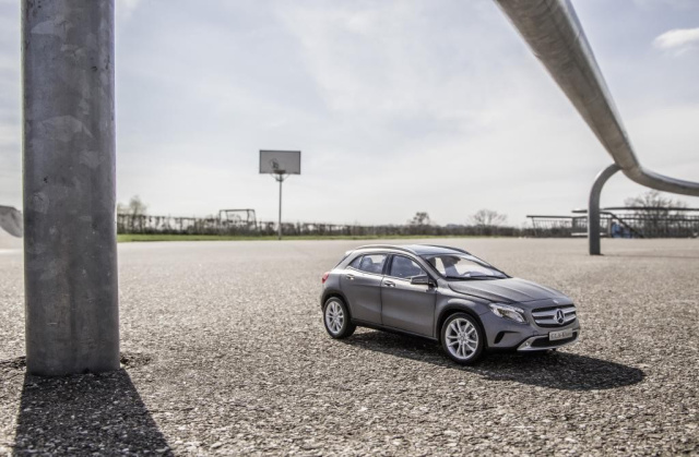 Der neue Mercedes GLA kommt nicht nur in ganzer Größe und voller Schönheit gut bei allen, die ihn sehen, an. Auch im Kleinformat ist die GLA-Klasse großartig. Das fünfte Mitglied der SUV-Familie von Mercedes-Benz gibts jetzt auch für die Vitrinen der Modellauto-Sammler. Die in Kooperation mit Norev, Schuco und Herpa gefertigten Miniaturen in 1:18, 1:43 und 1:87 bleiben in punkto Qualitätsanspruch hinter dem Original nicht zurück: Klein aber fein gemacht sind sie. Die hochwertigen Modelle des GLA wurden detailgetreu mit Hilfe der originalen Konstruktionsdaten (CAD-Daten) entworfen, tragen Original-Lackfarben und werden von Hand montiert. Erhältlich sind die Modellautos online unter http://shop.mercedes-benz.de sowie bei den Mercedes-Benz Vertriebspartnern.