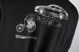 Neben den faszinierenden Automodellen bietet die Mercedes-Benz 125! Jahre Innovation Selection weitere Produkte, die stilvoll auf den Geburtstag des Automobils Bezug nehmen. Dazu zählen unter anderem ein Poloshirt, ein Cap, ein versilberter Schlüsselanhänger oder eine Kaffeetasse im exklusiven Ritzenhoff-Design. Wiederkehrende Merkmale sind die Farbgebung in Schwarz, Weiß und Silber sowie der Schriftzug 125! Jahre Innovation. Die abgebildeten Fahrzeugsilhouetten der Modelle Patent-Motorwagen, 300 SL und CLS erzählen die automobile Zeitgeschichte und stehen exemplarisch für die Verbindung von Tradition und Innovation. Die 125! Jahre Innovation Selection von Mercedes-Benz ist erhältlich online unter www.mercedes-benz.de/collection und bei den Mercedes-Benz Partnern.
