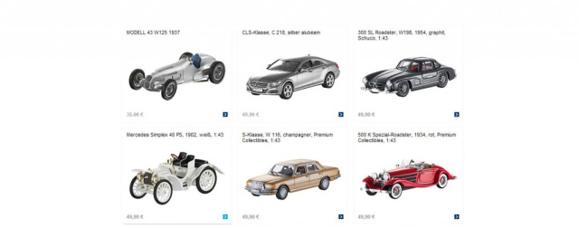Zum 125. Geburtstag des Automobils hat Mercedes-Benz eine außergewöhnliche Collection aufgelegt. Glanzstücke sind speziell angefertigte, hochkarätige Modelle legendärer Fahrzeuge der Stuttgarter Premiummarke. Weitere hochwertige und ungewöhnliche Accessoires spiegeln ebenfalls die 125jährige Geschichte der Erfinder des Automobils wider. Mercedes-Benz lädt ein zu einer faszinierenden Zeitreise durch eine bewegte Automobilgeschichte. Mercedes-Benz präsentiert zum Jubiläum eine Auswahl automobiler Meilensteine seiner Historie in Miniaturformat. Der bei Sammlern bevorzugte Maßstab 1:43 erlaubt es, bei Modellautos noch feine Details auszuführen, die Optik und Charakter eines Fahrzeugs prägen.