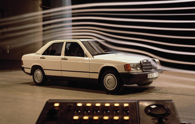 Das Design des W 201, für welches Bruno Sacco verantwortlich zeichnet, setzt ebenfalls Maßstäbe. Diese Baureihe, die ein ganz neues Segment im Programm der Marke begründet, setzt mit ihren modernen Linien ein Signal. Zugleich wird die Limousine aerodynamisch optimal ausgelegt. Mit einem Luftwiderstandsbeiwert von cW=0,34 hat sie bei ihrer Premiere 1982 die beste Aerodynamik aller Mercedes-Benz Limousinen.
