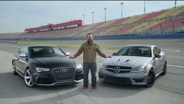 Head 2 Head ist eine Autotestreihe des bekannten englischsprachigen Automagazins Motor Trend. In einer aktuellen Ausgabe dieses Reihe nahm Redakteur Jonny Lieberman das Mercedes C63 AMG Edition 507 Coupe und den Audi RS5 unter die Lupe. 507-Mercedes-PS treten gegen den 453 Pferdestärken und Quattro-Antrieb aus Ingolstadt an. Welcher von den beiden deutschen Achtzylindern macht wohl das Rennen? Wir wollen ja vorab nicht alles verraten. Nur so viel: Aus Sicht eines Mercedes-Fans gibts zum Schluss des 11minütigen Videos in englischer Sprache ein Happy End. (Bild: Screenshot YouTube)
