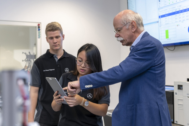1.900 junge Erwachsene haben in diesem Jahr an mehr als 50 Standorten in Deutschland bei Daimler ihre Ausbildung begonnen. Für die 192 neuen Auszubildenden und 64 dualen Studenten des Mercedes-Benz Werks Untertürkheim gab es einen besonderen Auftakt: Dieter Zetsche, Vorstandsvorsitzender der Daimler AG und Leiter Mercedes-Benz Cars, besuchte die neuen Kolleginnen und Kollegen persönlich – für die Auszubildenden die Chance, nicht nur mehr über das Unternehmen, sondern auch mehr über „ihren“ Vorstandvorsitzenden zu erfahren. Dieter Zetsche: „Unsere neuen Kolleginnen und Kollegen haben uns mit ihrer Persönlichkeit, ihren Fähigkeiten und jeder Menge Begeisterung für den Stern überzeugt. Genau solche Talente brauchen wir, denn gemeinsam gestalten wir die Zukunft der Mobilität und schreiben die Geschichte des Automobils weiter.“
