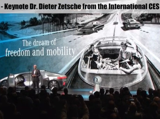 Heute morgen hat Dr. Dieter Zetsche mit dem F015 die Vision einer autonom fahrenden Luxus-Klasse vorgestellt. Eine sehenswerte Präsentation, die wir Ihnen hiermit sehr gern zeigen wollen. Zumal sie mit einem feinen Humor unterlegt ist. So bilden die Icons der C-, E- und S-Klasse den Namen der Veranstaltung CES. Und dass wir nicht gerne Bedienungsanleitungen lesen, wird auch auf augenzwinkernde Weise thematisiert.