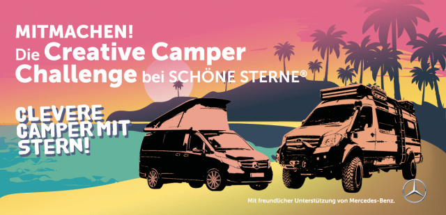 Mach mit bei der CREATIVE CAMPER CHALLENGE und präsentiere dein Wohnmobil beim Mercedes-Festival SCHÖNE STERNE! Mit etwas Glück gibt es einen satten Zuschuss für die Reisekasse. Weitere Infos am Ende des Artikels und unter www.creativecamperchallenge.de.