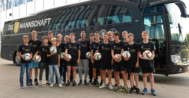Für 17 Kinder der Frankfurter Straßenfußball-Initiative „buntkicktgut“ wurde das EM-Qualifikationsspiel Deutschland gegen Polen am vergangenen Freitag zu einem unvergesslichen Erlebnis. Im Rahmen seiner Initiative „Magic Moments“ hatte Mercedes-Benz die Jungen nach Frankfurt eingeladen. Bereits am Vortag des Spiels konnten sie beim Training der Nationalmannschaft zuschauen und ihre Idole hautnah erleben. Bei einer Kinderpressekonferenz stellte sich Doris Fitschen, Managerin der deutschen Frauennationalmannschaft, ihren Fragen. Am Spieltag selbst fuhren die Nachwuchstalente mit einem exklusiven Shuttlebus am Stadion vor. Dort konnten sie bei einer Stadionführung hinter die Kulissen blicken. Das EM-Qualifikationsspiel erlebten sie live im Stadion.