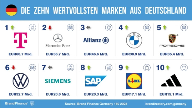 Es ist ein Titel, mit dem man prahlen kann: wertvollste deutsche Marke. Klingt gut, oder? Kann man gerne weitersagen. Über viele Jahre hatte Mercedes-Benz quasi ein Abonnoment auf Platz 1, wenn die Marktforschungsinstitute ihre Markenrankings erstellten. Doch 2023 ist schnappt sich laut Brand Fiancne die Deutsche Telekom mit einem Markenwert von 60,7 Milliarden Euro die Spitzenposition im Ranking der wertvollsten deutschen Marken. Der Markenwert von Mercedes-Benz wird von den Marktfoschungsprofis dagegen nur mit 56,7 Milliarden Euro bewertet. Dabei ist es nicht so, dass Mercedes-Benz zuletzt geschwächelt hätte - aber während der Erfinder des Automobils nur ein moderates Wachstum generierte, habe die Deutsche Telekom eine starke Wachstumsgeschichte hingelegt, erklärt Brand Finance den Sturz des Sterns vom obersten Podestplatz.