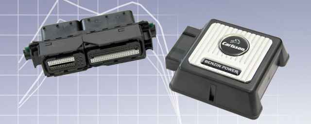 Mit den Carlsson-Leistungssteigerungen C-Tronic® CB erreichen die Vierzylindermotoren von Mercedes-Benz einen Kraftzuwachs von bis zu 28 Prozent. Der Montageaufwand beschränkt sich darauf, das Zusatzsteuergerät via Plug-and-Drive anzustecken. Mit neuem Motormanagement optimiert der Mercedes-Spezialist aus dem saarländischen Merzig die Motoren des Stuttgarter Herstellers. Dank der Anbindung an das Bordnetz kommuniziert das Carlsson-Steuergerät laufend mit der Fahrzeugelektronik und liest alle erforderlichen Parameter aus. Dies soll nicht nur die optimale Leistungsausbeute garantieren, sondern zudem sicherstellen, dass sämtliche sicherheitsrelevanten Grenzwerte stets eingehalten werden und der Motor keinem erhöhten Verschleiß ausgesetzt wird. Carlsson bietet die C-Tronic® CB für die Vierzylindermotoren mit Turboaufladung (Motorcode M 271 EVO) in zwei Leistungsstufen an. Die Fahrzeuge erfüllen weiterhin die Abgasnorm Euro 5.