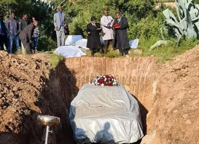Afrikanische Medien charakteriseren Tshekede Bufton Pitso, der ein hochrangiges Mitglied der Vereinigten Demokratischen Bewegung war, als „extravagante“ Persönlichkeit. Zur letzten Ruhe ließ er sich stilchecht betten - mit Anzug und weißem Hemd saß er angeschnallt auf dem Fahrersitz; die Händen waren am Steuer. (Newsquelle: The Ghana Report / Bilder: Facebook/Mfundo Nqata Bongela)
