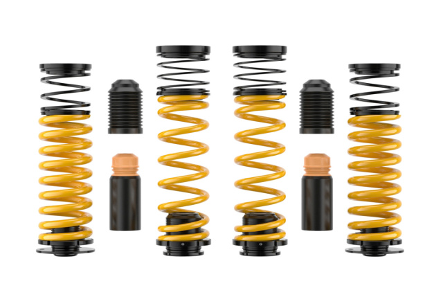 Im Lieferumfang der ST Gewindefedern ist sämtliches Montagezubehör wie etwa angepasste ST Faltenbälge und ST Elastomeranschlagelemente enthalten. Die Tieferlegung wird an beiden angetriebenen Achsen des Mercedes-AMG C 43 4matic T-Modells (S206) über die Gewindefederteller beim Einbau eingestellt. Das Teilegutachten deckt dabei eine Tieferlegung von 5 bis 25 Millimeter an beiden Achsen ab. Die Federrate der ST Gewindefedern ist aufgrund des kürzeren Federwegs etwas straffer als die originalen Federn.
