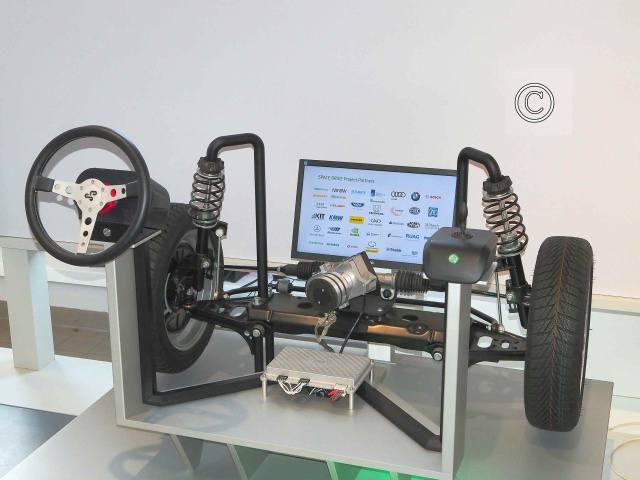 Und was passiert mit dem Lenksystem, wenn man gegen einen Randstein prallt oder heftig in ein Schlagloch rumpelt? Uphoff: „Dafür wird es einen mechanischen Anschlag geben.“ Und dann stellt sich noch die Frage nach dem klassischen Lenkradschloss? Uphoff: „Braucht man nicht. Bei einem abgestellten Fahrzeug gibt es ja keine Verbindung zwischen Lenkrad und Lenkgetriebe.“ Und wie kann man dann Drive-by-wire-Fahrzeug abschleppen? Uphoff: „Ein selbsthemmendes Getriebe stellt sicher, dass die Räder bei ausgeschalteter Zündung geradestehen.“