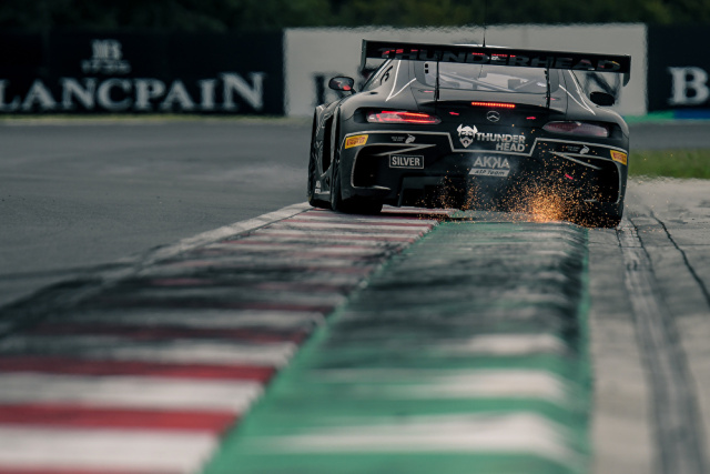 Das Wochenende auf dem 4,381 Kilometer langen Kurs in Ungarn startete perfekt: In den beiden Qualifying-Sessions am Samstagmorgen sicherte sich das AKKA ASP Team für Rennen eins und Rennen zwei die Pole Position. Raffaele Marciello war schnellster Fahrer im zweiten Qualifying und ging somit am Sonntag von Position eins auf die Strecke. Wegen extrem nasser und schwieriger Bedingungen musste das 21 Fahrzeuge starke Teilnehmerfeld zunächst hinter dem Safety Car starten. Zusammen mit seinem Markenkollegen Luca Stolz (GER) von BLACK FALCON, der von Position zwei aus ins Rennen ging, setzten sich beide an die Spitze des Feldes. Marciello nutzte den Vorteil der freien Sicht auf nasser Fahrbahn und fuhr mit den schnellsten Rundenzeiten des Feldes einen Vorsprung heraus, den er bis zum Boxenstopp 25 Minuten vor Rennende auf rund sechs Sekunden ausbaute.