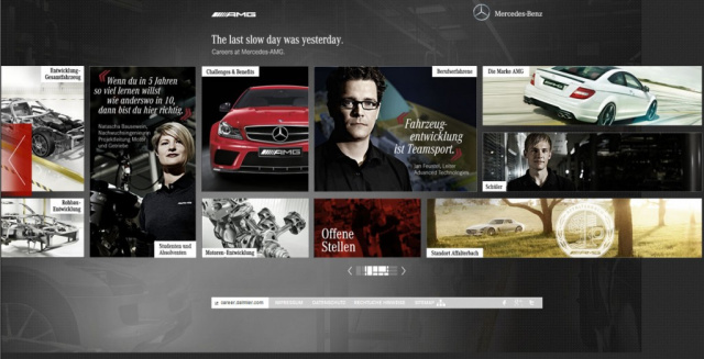Auf der überarbeiteten Karrierewebsite www.karriere.mercedes-amg.com können sich Studenten, Absolventen und Berufserfahrene bei der Jobsuche ab sofort gezielter über Stellenangebote und die Unternehmenskultur der Mercedes-AMG GmbH informieren. Zurzeit verzeichnet das Unternehmen rund 1.000 Bewerber pro Monat, die wie Recherchen zeigen hauptsächlich über das Internet auf die Stellenangebote von Mercedes-AMG aufmerksam werden. Mit der neu konzipierten Karrierewebsite will das Tochterunternehmen der Daimler AG den Bewerbern bei ihrer Jobsuche frühzeitig erste Eindrücke der Arbeitswelt von AMG vermitteln.