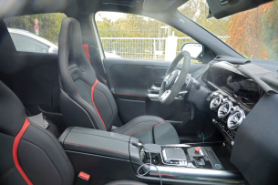 Mercedes-Fans.de zeigt die aktuellsten Bilder vom zukünftigen Mercedes AMG GLA 45 Prototyp (H247). Unser Blick in den Innenraum zeigt nicht nur das sportliche Lenkrad und die Sportsitze, sondern auch das Armaturenbrett mit Mittelkonsole. Der GLA-45-Prototyp trägt erstmals die doppelten Endrohre und steht auf einer Reifengröße von 255/40 ZR 20. Den GLA II wird es als AMG 35 mit 306 PS sowie AMG 45 mit 387 PS und 421 PS geben. Seine Premiere wird der neue Mercedes Benz GLA im kommenden Jahr als 2021er Modell feiern. (Fotos: S.Baldauf / SB Medien)