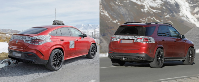 Auf frischer Fahrt ertappt! Heute können wir euch die neusten Bilder von der Mercedes-AMG GLE 53 Modellpflege für das Jahr 2023 zeigen. Beide Karosserie-Varianten, also GLE 53 SUV und GLE 53 Coupé, sind zusammen in den Alpen bei Testfahrten unterwegs. Wir konnten die Modelle aus nächster Nähe ablichten und sogar einen Blick in den Innenraum werfen. Wie es scheint erhält das GLE Facelift ein neues Lenkrad. Dazu erhält der der Infotainment-Bildschirm eine neue Grafik.