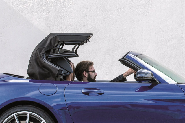Vom zweisitzigen Sportwagen in nur wenigen Sekunden zum offenen Roadster mit puristischem Open-Air-Feeling. Bei den beiden neuen Mercedes-AMG Roadstern GT und GT C schafft Webasto diesen Freiraum durch ein exklusives Stoffverdeck. Unter Einsatz modernster Materialien gelingt den Experten das Kunststück, die Sportlichkeit des Fahrzeugs ins Verdeckmodul zu übertragen und gleichzeitig höchsten Komfort zu bieten. So kann sich der Fahrer, nachdem das Verdeck geöffnet und hinter den Sitzen abgelegt wurde, den Wind ganz unbeschwert um die Nase wehen lassen. Im geschlossenen Zustand werden Geräusche durch das Verdeck herausgefiltert. Dann herrscht ein Akustikkomfort der besonderen Art im Innenraum. Abgerundet durch eine spezifische Designlinie, unterstreicht das Cabrioverdeck von Webasto den individuellen Charakter der beiden Mercedes-AMG Roadster.