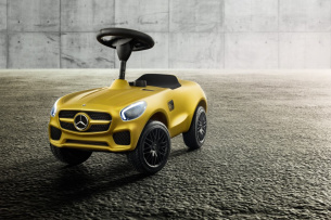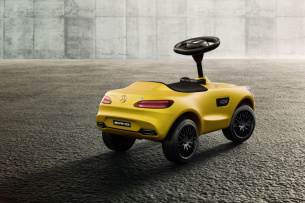 Alle drei Fahrzeuge sind aus robustem Kunststoff gefertigt und geeignet für Kinder ab 18 Monaten. Hergestellt wird der Bobby-AMG GT vom Erfinder des Bobby-Cars, der BIG-Spielwarenfabrik in Burghaslach/Bayern, vertrieben von der