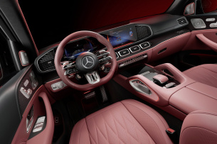 Mit der neuen Farbe MANUFAKTUR hightechsilber magno ist erstmals ein AMG- und editionsspezifischer Mattlack erhältlich. Als Kontrast dazu gibt es schwarze und rote Akzente. Das beginnt bereits bei den Schmiederädern im Vielspeichendesign im Format 22 Zoll (GLE SUV und Coupé) oder 23 Zoll (GLS). Sie sind mattschwarz lackiert und mit roten Felgenhörnern veredelt. Die Radnabenabdeckungen tragen das AMG Logo, kombiniert mit Lorbeerkranz-Elementen. Rote Bremssättel an Vorder- und Hinterachse verstärken den sportlich-eleganten Auftritt.