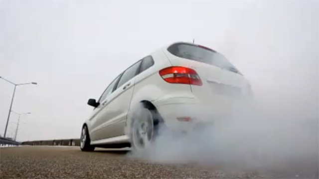 Der bei Mercedes-Fans.de als Auto der Woche vorgestellte Mercedes B55 begeistert nicht nur beim Lesen, sondern auch im Video. Die von zwölf Auszubildenden mit einem 5,5-Liter-V8 und 388 PS gepowerte B-Klasse kann richtig Gummi geben - wie ein Burnout Video beweist. Für rustikalere Sportwagen- und V8-Fans dürfte sich der Dampf, den der Mercedes B55 schmauchend an der Hinterachse produziert, nicht nur in Rauch, sondern auch in Wohlgefallen auflösen.