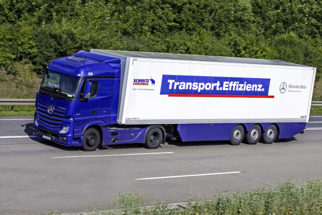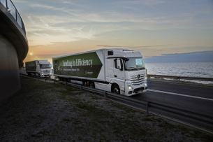 Das Mehr an Effizienz wirkt sich bei schweren Brummis nicht nur als Plus für Unternehmen, sondern auch als Gewinn für die Umwelt aus. Eine Beispielrechnung: Bei einer Fahrleistung von 130.000 km jährlich und voller Auslastung verbraucht der Actros mit der neuesten Generation des OM 471 im Vergleich zum Vorgängermodell rund 1.100-Liter-Kraftstoff ein. Das Weniger an Spritverbrauch entspricht einer Verringerung des CO2-Ausstoßes von rund drei Tonnen pro Lastwagen.