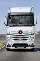 Das Komfortpaket schließt unter anderem eine Ambiente-Beleuchtung im Innenraum, eine PremiumComfort-Matratze und ein elektrisch bedienbares Glasschiebedach mit ein. Besonders freuen werden sich die Fahrer über den beleuchteten Mercedes-Stern am Kühlergrill. Sonnenschutzrollos und Komfortschließanlage sind Beispiele aus dem speziellen Fahrerpaket, mit dem die Actros Racing Edition die konsequente Fahrerorientierung betont. Einen sparsamen Kraftstoffverbrauch gewährleisten der vorausschauende Tempomat Predictive Powertrain Control (PPC), die Reifendruck-Kontrolle und die aerodynamisch gestylte Seitenverkleidung.