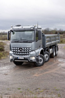 Neu beim Arocs sind die Produktgruppen Loader und Grounder. Beim Arocs Loader wurden alle Möglichkeiten, Eigengewicht einzusparen, konsequent umgesetzt. Das Ergebnis sind nutzlastoptimierte 4x2-Sattelzugmaschinen, die zu den leichtesten im Bauverkehr zählen sowie 8x4/4-Betonmischer mit 32 t zulässigem Gesamtgewicht, die dank einem besonders niedrigen Eigengewicht von höchstens 9250 kg bei jeder Fahrt 8 m3 Fertigbeton liefern können.