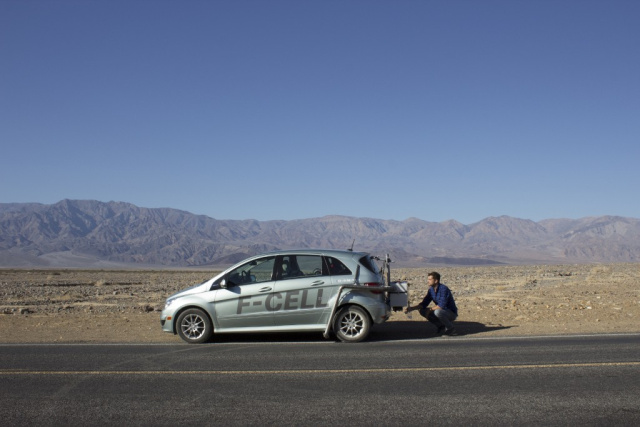 Im Film Defying Death Valley fahren die beiden zwei Tage lang durch das rund 50 Grad Celsius heiße Death Valley ohne Trinkwasservorräte. Sie machen ihr Leben von den Emissionen der B-Klasse F-CELL abhängig. Die Hollywoodstars nutzen das Wasser, das beim Fahren durch den Betrieb der Brennstoffzelle entsteht zum Trinken und Kochen.