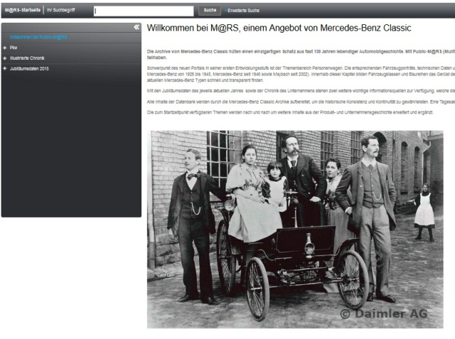 Für alle Mercedes-Benz Classic Fans gibt es noch ein Highlight in diesem Jahr. Mercedes-Benz macht sein Multimedia-Archiv und Recherche-System „M@RS“ (gesprochen „Mars“) ab dem 30. Januar öffentlich. Ab diesem Tag können Mercedes-Fans das Online Portal Public M@RS unter kostenlos nutzen.